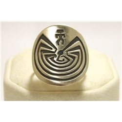 Navajo Spinner Sterling Silver Pueblo Scene Men's Ring - Elaine Becenti