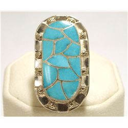 Zuni Turquoise Inlay Sterling Silver Women's Ring - Carmichael Haloo Inlay measures 1-1/4" tall by 9/16" wide. Face measures 1-1/2&q...