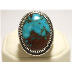 Old Pawn Navajo Mountain Turquoise Sterling Silver Men's Ring - Kirk Smith