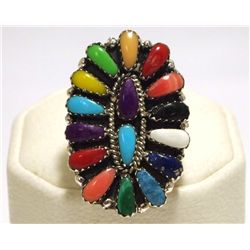 Navajo Multi-Stone Inlay Sterling Silver Women's Ring - Ray Jack Inlay measures 1-3/8" tall by 7/16" wide, face measures 1-1/2"...