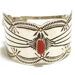 Navajo Spiny Oyster Sterling Silver Cuff Bracelet - Mary Ann Spencer Measures 5-5/8" around with a 1" gap, 7/8" wide. Weight: 32.4...