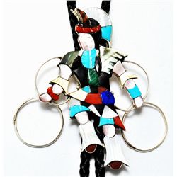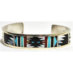 Zuni Multi-Stone Inlay Knifewing Kachina Sterling Silver Cuff Bracelet - Dennis & Nancy Edaakie