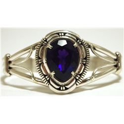 Navajo Amethyst Sterling Silver Cuff Bracelet - Eugene Belone