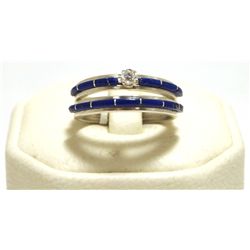 Zuni Cubic Zirconia & Lapis Lazuli Sterling Silver Women's Engagement Ring Set - Marlene Shekya Engagement Ring: Inlay channels measure 1/...