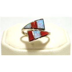 Zuni Coral & Opal Inlay Sterling Silver Adjustable Women's Ring - Cena Woobthee