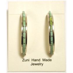 Zuni Light Turquoise Inlay Sterling Silver Half-Ring Post Earrings - Susan Kalestewa Measure 1-1/4" tall by 1/8" wide by 5/8" deep....