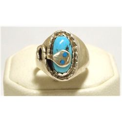 Zuni Turquoise Sterling Silver Snake Men's Ring - Effie Calavaza
