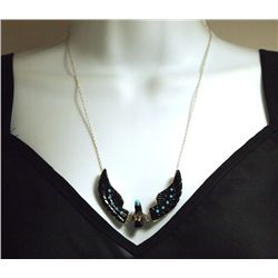 Navajo Coral & Turquoise Sterling Silver Mini Squash Blossom Necklace - Larry Curley Measures 17" around. Naja measures 1/2" tall by...