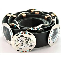 Zuni Multi-Stone Koshare Clown Sterling Silver Bolo Tie - Beverly Etsate Measures 2-1/8" tall by 1-5/8" wide, 38" around. SKU: bo...