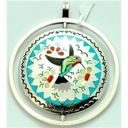Zuni Multi-Stone Spinner Bird and Hummingbird Large Pendant - Sammy & Esther Guardian Measures 2-7/8" tall by 2-1/2" wide. Weight: ...