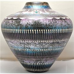 Acoma Pueblo Bird Etched Horsehair Pottery - Gary Yellow Corn Louis Height: 2-1/2" Opening Width: 1-3/4" Circumference: 15" Maximum...