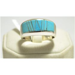 Navajo Turquoise Inlay Sterling Silver Men's Ring - Calvin Begay