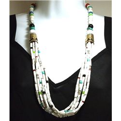 Navajo Howlite & Multi-Stone 6-Strand Necklace - Tommy Singer Measures 30" around by from 3/8" to 3/4" wide (top strand), 3/16&...