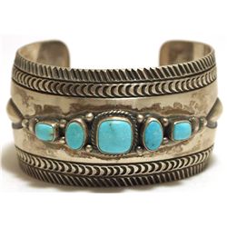 Old Pawn Navajo Sleeping Beauty Turquoise Sterling Silver Cuff Bracelet - Aaron Toadlena