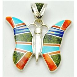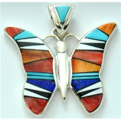 Navajo Multi-Stone Butterfly Pendant - Calvin Begay Measures 1-1/2" tall by 1-1/2" wide. SKU: pp0146 --------------------------------...