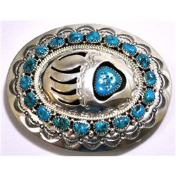 Navajo Turquoise Sterling Silver Bear Paw Buckle - Wilbert Muskett, Sr.