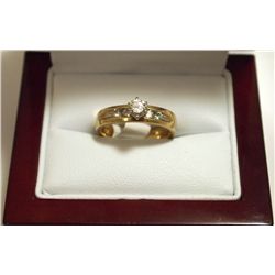 Dead Pawn Non-Native Diamond 14k Gold Women's Ring - CBI Band measures 1/8" wide, size: 5.5. Center round-cut diamond measures approximat...