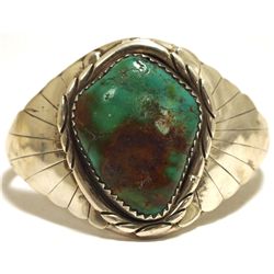 Old Pawn Navajo Green Turquoise Sterling Silver Cuff Bracelet - BV