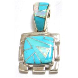 Navajo Multi-Stone Square Sterling Silver Pendant - Calvin Begay Measures 1-1/4" tall by 3/4" wide. Stones present: Turquoise, White Opa...