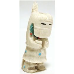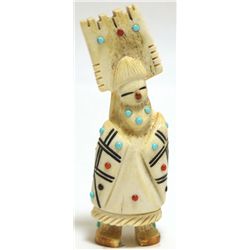 Zuni Fossilized Ivory, Black Jet Coral & Turquoise Maiden Fetish - Claudia Peina Measures 3" tall by 1" wide by 5/8" deep. Maid...