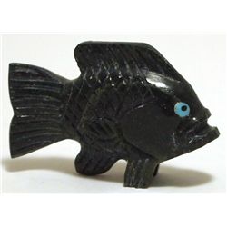 Zuni Fish Rock, Black Jet, Coral & Turquoise Bear Fetish - Jeremy Lucero