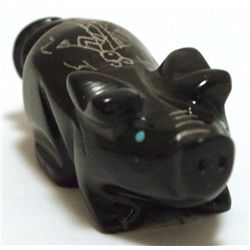 Zuni Fish Rock, Black Jet, Coral & Turquoise Bear Fetish - Jeremy Lucero Measures 1-1/4" tall by 3/8" wide by 2-1/4" deep. Bear...