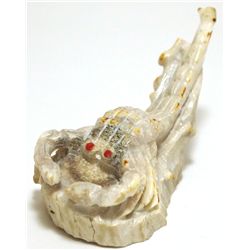 Zuni Fossilized Ivory & Coral Scorpion Fetish - Elton Kaamasee