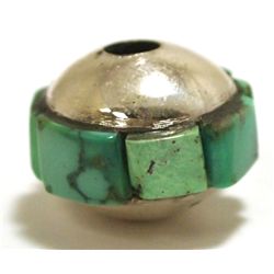 Navajo Green Turquoise Inlay Sterling Silver Pendant - Edison Yazzie Measures 1/2" tall by 5/8" wide including bale. Hole going through ...