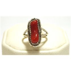 Navajo Coral Sterling Silver Women's Ring - David Skeets