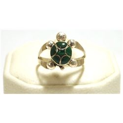 Zuni Malachite Inlay Sterling Silver Large Turtle Women's Ring - Vernon Waikaniwa Turtle measures 9/16" tall by 1/2" wide. Band meas...