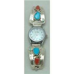 Zuni Coral and Turquoise Women's Watch - Effie Calavaza