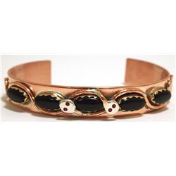 Zuni Onyx Copper Coral-Eyed Snake Cuff Bracelet - Effie Calavaza