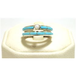 Zuni Cubic Zirconia & Turquoise Sterling Silver Women's Engagement Ring Set - Marlene Shekya