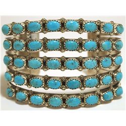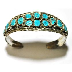 Navajo Turquoise Cluster Sterling Silver Cuff Bracelet