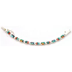 Navajo Multi-Stone Inlay Sterling Silver Link Bracelet - Edison Yazzie / Lazuli