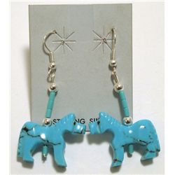 Zuni Turquoise Horse Fetish French Hook Earrings - Todd Etsate Measure 2-5/8" tall by 1" wide. Weight: 6.5g SKU: ea0398 -------------...