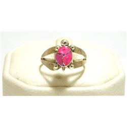 Zuni Matte Pink Opal Inlay Sterling Silver Small Turtle Women's Ring - Vernon Waikaniwa