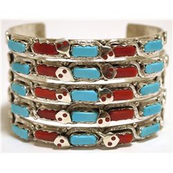 Zuni Coral & Turquoise Snake Sterling Silver Cuff Bracelet - Effie Calavaza