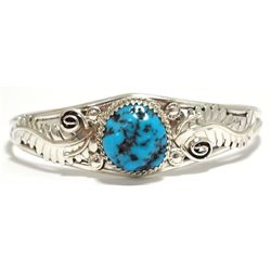 Navajo Sleeping Beauty Turquoise Sterling Silver Cuff Bracelet - Renee Yazzie