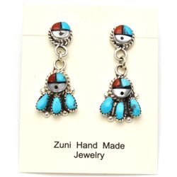 Zuni Coral & Turquoise Earrings - E.A. Measure 1-1/8" tall by 1/2" wide. SKU: ea0187 --------------------------------------------...