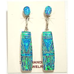 Zuni Blue/Green Opal Inlay Sterling Silver Post Earrings - Phyllis Lucio Measure 1-3/4" tall by 5/16" wide. Weight: 6.2g SKU: ea0324 ...