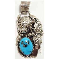 Navajo White Buffalo Sterling Silver Pendant - Eugene Belone