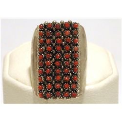 Zuni Multi-Stone Channel Inlay Sterling Silver Men's Ring - D. Panteah Inlay measures 1/4" tall by 1-1/4" wide/around. Band measures...