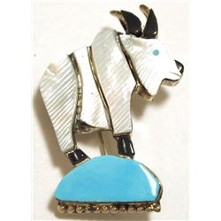 Zuni Multi-Stone Inlay Mountain Goat Sterling Silver Pendant & Pin - Stephan Lonjose