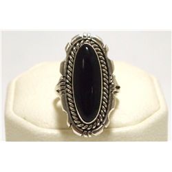 Navajo Onyx Sterling Silver Women's Ring - Larry Spencer1590 - Navajo Onyx Sterling Silver Women's Ring - Larry Spencer