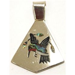 Zuni Multi-Stone Inlay Hummingbird Sterling Silver Pendant - Sanford Edaakie Measures 1-1/4" tall by 7/8" wide including bale. Bale open...