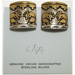 Navajo 12k Gold Fill over Sterling Silver Kokopellis Clip-on Earrings - Tommy Singer1762 - Navajo 12k Gold Fill over Sterling Silver Kokopellis Clip-on Earrings - Tommy Singer