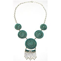 Zuni Turquoise Sterling Silver Necklace & Earrings Set - Fadrian & Vivica Bowannie1743 - Zuni Turquoise Sterling Silver Necklace & Earrings Set - Fadrian & Vivica Bowannie