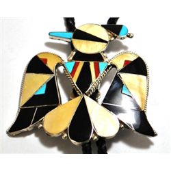 Zuni Golden Mother of Pearl Inlay Thunderbird Bolo - Rosie Tekala Measures 2-3/4" tall by 3" wide, 36" around. Tips measure 1-1/4&q...