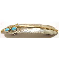 Navajo Turquoise 12k Gold Fill Sterling Silver Feather Hair Barrette - Virgil Reader Measures 5/8" tall by 3-1/4" wide. Barrette clip me...